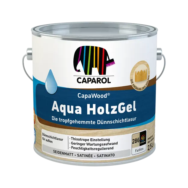 Transparent pigmentiertes,diffusionsoffenes und dünnschichtiges Lasurgel auf Basis einer Kombination von modifizierten, wässrigen Alkyd- und Acrylatharzen. Zur Farbgebung, zum UV-Schutz und zum Schutz gegen Witterungseinflüsse.
